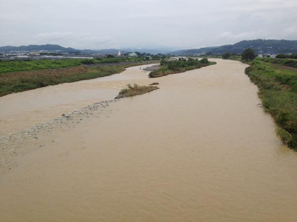 今朝の寒河江川の様子(2013年7月22日 午前8時頃)朝のうち雨のち曇り 気温25℃/水温14℃ 【チェリーランド上流側駐車場前上流方向】【チェリーランド上流側駐車場前】【チェリーランド上流側駐車場前下流方向】【チェリーランド下流寒河江川橋(三泉橋)より上流方向】ここ場所は流れ方が変わってようです。(流心が中州付近から左岸から右岸へ)【寒河江川橋の上から】【寒河江川橋上流側】〜7月22日以上〜