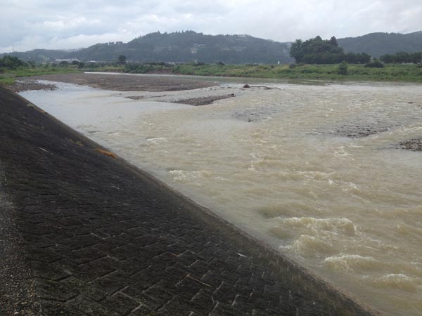 今朝の寒河江川の様子(2013年8月24日 午前8時頃)雨 気温24.0℃/水温20℃【チェリーランド上流側駐車場前上流方向】【チェリーランド上流側駐車場前】【チェリーランド上流側駐車場前下流方向】 【チェリーランド下流寒河江川橋(三泉橋)より上流方向】【寒河江川橋上より】 【寒河江川橋上流側】〜8月24日以上〜