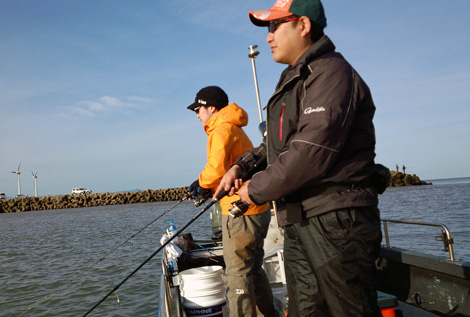 【釣果】 早朝5時、東風が少し吹く中出航となり、南防波堤や他のボートで釣りをされている方々に混じって釣行がスタートしました。