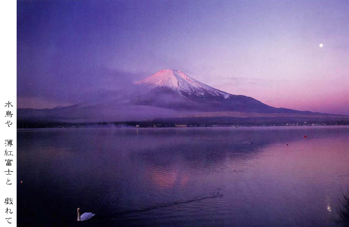 ◆水鳥 1月 山中湖より 『水鳥や 薄紅富士と 戯れて』